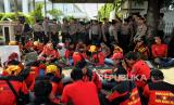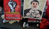 REPUBLIKA.CO.ID,JAKARTA - - Massa dari elemen buruh saat menggelar aksi di depan gedung Pengadilan Negeri saat sidang lanjutan terdakwa Direktur Eksekutif Lokataru Haris Azhar dan terdakwa Kordinator KontraS Fatia Maulidiyanti di Jakarta, Kamis (8/6/2023).