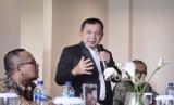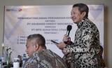 Direktur Operasional PT Askrindo Erwan Djoko Hermawan memberikan sambutan sebelum Penandatanganan Perjanjian Kerja Sama Antara PT Asuransi Kredit Indonesia dengan PT Bank Pembangunan Daerah Sumatera Utara Tbk (BSMT) tentang PKS Induk, PKS Kontra Bank Garansi dan PKS Asuransi Kredit Konstruksi dan non Konstruksi di Jakarta, Kamis (8/6/2023). PT Askrindo akan terus meningkatkan kolaborasi dengan mitra-mitra perbankan lainnya untuk membangun ekosistem BUMN yang sehat dan memiliki daya saing yang kuat, serta memberikan perlindungan bagi para pemegang polis, dan mendorong perekonomian nasional. (FOTO : Republika/Edwin Dwi Putranto)