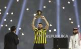 Pemain tim sepak bola Saudi Al Ittihad Karim Benzema memegang trofi Ballon d (FOTO : AP)