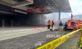 Petugas melakukan penanganan kebakaran yang terjadi di pusat perbelanjaan Matahari di Jalan Veteran, Kecamatan Cihideung, Kota Tasikmalaya, Jumat (9/6/2023). (FOTO : Republika/Bayu Adji P)