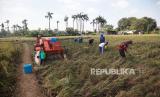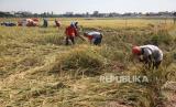 Sejumlah petani memanen padi di area persawahan Pemkot Jakarta Barat di RT 01/04 Semanan, Kalideres, Jakarta, Jumat (9/6/2023). Ditengah berkurangnya area persawahan di Jakarta, para petani dikawasan tersebut berhasil memanen 32,5 ton padi dari lahan seluas 5 hektare. (FOTO :  ANTARA FOTO/Reno Esnir)