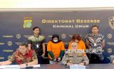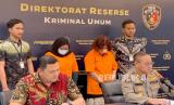 Subdit Renakta Ditreskrimum Polda Metro Jaya menangkap dan menetapkan dua tersangka kasus tindak pidana perdagangan orang (TPPO) berinisial A (30 tahun) dan HCI (61 tahun), Jumat (9/6/2023). (FOTO : Republika/Ali Mansur)