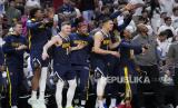 Pemain Denver Nuggets melakukan selebrasi saat melawan Miami Heat pada Game 4 Final NBA di Kaseya Center, Miami, Amerika Serikat, Jumat (9/6/2023) waktu setempat. Nuggets menang dengan skor 108-95. (FOTO : AP Photo/Wilfredo Lee)