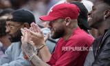 Pesepakbola Brazil, Neymar menyaksikan pertandingan Game 4 Final NBA antara Denver Nuggets melawan Miami Heat di Kaseya Center, Miami, Amerika Serikat, Jumat (9/6/2023) waktu setempat. Nuggets menang dengan skor 108-95. (FOTO : AP Photo/Wilfredo Lee)