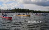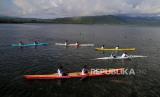 REPUBLIKA.CO.ID, MALUKU UTARA -- Sejumlah peserta beradu kecepatan dalam lomba dayung perahu di Teluk Jailolo, Kabupaten Halmahera Barat, Maluku Utara, Sabtu (10/6/2023).
