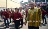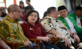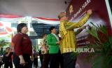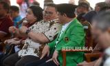 Ketua Bawaslu Rahmat Bagja berbincang dengan Plt Ketum PPP Mardiono dalam acara Deklarasi/ (FOTO : Republika/Prayogi)