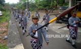 REPUBLIKA.CO.ID, YOGYAKARTA -- Prajurit Bregada melakukan parade menuju lokasi Festival Bregada Sleman 2023 di Lapangan Baratan, Sleman, Yogyakarta, Ahad (11/6/2023).