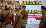 Prajurit Bregada menunggu giliran tampil saat Festival Bregada Sleman 2023. (FOTO : Republika/Wihdan Hidayat)