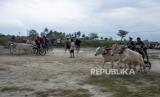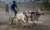 REPUBLIKA.CO.ID,SIGI -- Joki memacu sapinya pada karapan sapi tradisional di Desa Baliase, Sigi, Sulawesi Tengah, Ahad (11/6/2023).