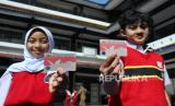 Dua pelajar memperlihatkan Kartu Identitas Anak (KIA) usai acara Penyerahan Kartu Identitas Anak Bagi 22 SD dan SMP di Kota Bandung, di SD Negeri 001 Merdeka, Jalan Merdeka, Kota Bandung, Senin (12/6). Kegiatan tersebut merupakan implementasi Kisanak (KIA kerja sama dengan Sekolah Anak). Kisanak merupakan inovasi akselerasi penerbitan KIA secara kolektif di sekolah-sekolah kerja sama dengan Dinas Pendidikan Kota Bandung. Kepemilikan KIA terus disosialisasikan, salah satunya untuk mengoptimalkan pendataan, perlindungan, dan pelayanan publik secara mandiri. (FOTO : Edi Yusuf/Republika)