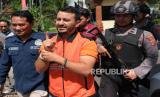 REPUBLIKA.CO.ID,BADUNG -- Polisi menggiring warga negara Kanada Mohamed Reda Delaa (tengah) yang sempat viral di media sosial karena berulah dengan membawa senjata tajam, saat konferensi pers di Polres Badung, Bali, Senin (12/6/2023).