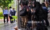 Komisioner KPK periode 2015-2019 Saut Situmorang bersama perwakilan Indonesia Corruption Watch (ICW) dan Koalisi Masyarakat Sipil Kawal Pemilu Bersih saat menjawab pertanyaan jurnalis di Gedung Mahkamah Agung Republik Indonesia, Jakarta, Senin (12/6/2023). Koalisi Masyarakat Sipil Kawal Pemilu Bersih bersama Indonesia Corruption Watch (ICW) dan Komisioner KPK 2015-2019 Saut Situmorang mengajukan uji materi Peraturan Komisi Pemilihan Umum Nomor 10 dan 11 Tahun 2023 ke Mahkamah Agung. ICW menilai dalam peraturan tersebut KPU memberikan celah kepada para koruptor untuk maju dalam kontestasi pemilu legislatif. (FOTO : Republika/Thoudy Badai)