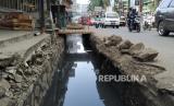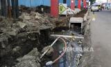 REPUBLIKA.CO.ID,  LEMBANG --  Proyek normalisasi drainase dan perbaikan trotoar oleh Pemerintah Kabupaten Bandung Barat (KBB), di pusat Kota Lembang, Kabupaten Bandung Barat, Selasa (13/6/2023).