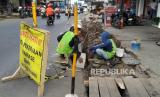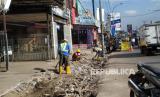 Proyek normalisasi drainase dan perbaikan trotoar oleh Pemerintah Kabupaten Bandung Barat (KBB), di pusat Kota Lembang, Kabupaten Bandung Barat, Selasa (13/6/2023). Proyek tersebut, selain sebagai upaya mengatasi banjir juga merupakan bagian dari penataan Lembang sebagai kota wisata. (FOTO : Edi Yusuf/Republika)