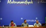 Ketua Majelis Hukum dan HAM PP Muhammadiyah, Trisno Raharjo menyampaikan paparan terkait perpanjangan masa jabatan ketua KPK di Gedung PP Muhammadiyah, Yogyakarta, Selasa (12/6/2023). MHH PP Muhammadiyah menolak hasil putusan MK terkait perpanjangan masa jabatan ketua KPK. Dan meminta pemerintah untuk melanjutkan proses seleksi pimpinan KPK 2023-2027. (FOTO : Republika/Wihdan Hidayat)