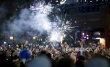 Sejumlah orang merayakan kemenangan Denver Nuggets dalam Kejuaraan NBA dengan kemenangan atas Miami Heat di Game 5 Final NBA bola basket, di Ball Arena, Denver, AS,Selasa, (13/6/2023)WIB. (FOTO : AP Photo/David Zalubowski)