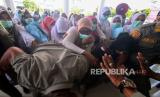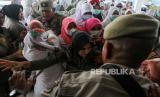 REPUBLIKA.CO.ID, LHOKSEUMAWE. -- Sejumlah Tenaga Kesehatan (Nakes) menerobos pagar betis Satpol PP saat unjuk rasa di kantor wali kota Lhokseumawe, Aceh, Selasa (13/6/2023).