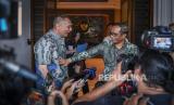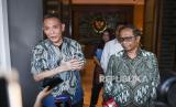 REPUBLIKA.CO.ID, JAKARTA. -- Menteri Koordinator Bidang Politik, Hukum, dan Keamanan Mahfud MD (kanan) bersama pengusaha Jusuf Hamka (kiri) memberikan keterangan pers seusai melakukan pertemuan di kantor Kemenko Polhukam, Jakarta, Selasa (13/6/2023).