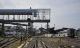 REPUBLIKA.CO.ID,BANDUNG -- Pekerja beraktivitas di dekat kereta pengumpan (feeder) di Depo Lokomotif Stasiun Bandung, Kota Bandung, Jawa Barat, Rabu (14/6/2023).