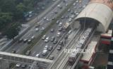 REPUBLIKA.CO.ID,JAKARTA -- Rangkaian kereta LRT Jakarta-Bogor-Depok-Bekasi (Jabodebek) melintas di Jalan Gatot Subroto, Jakarta Selatan, Kamis (14/6/2023).
