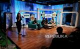 Plt Direktur Utama JAKTV Sony Soemarsono (kedua kiri) bersama Direktur Pemberitaan JAKTV Tian Bachtiar (kanan), Ketua Karang Taruna Provinsi DKI Jakarta Muhammad Mul (kedua kanan) dan Ketua Karang Taruna Jakarta Selatan Muhammad Luthfi Arwien (kiri) menyampaikan sambutan saat acara penandatanganan perjanjian kerjasama di Kantor JAKTV, Jakarta, Rabu (14/6/2023). JAKTV bersama Karang Taruna Provinsi DKI Jakarta menjalin kerjasama terkait pelatihan citizen journalist bagi anggota karang taruna se-Provinsi DKI Jakarta sebagai upaya pemberdayaan anggota dalam bidang jurnalis televisi yang nantinya diharapkan mampu berkolaborasi bersama JAKTV sebagai kontributor berita di seluruh wilayah DKI Jakarta. (FOTO : Republika/Thoudy Badai)