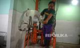 Petugas RPH menunjukkan alat pemotong karkas sapi saat tinjuan jelang Idul Adha di Rumah Potong Hewan (RPH) Giwangan, Yogyakarta, Rabu (14/6/2023). RPH Giwangan siap untuk melayani penyembelihan hewan qurban pada Idul Adha 1444H mendatang. Kuota penyembelihan per hari hewan ternak sebanyak 115 ekor. Khusus untuk Idul Adha, RPH akan menambah jumlah tenaga dan relawan yang sudah ahli serta profesional. (FOTO : Republika/Wihdan Hidayat)