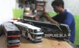 REPUBLIKA.CO.ID,MALANG -- Perajin membuat miniatur bus berbahan akrilik dan resin di rumah produksi Makobus, Singosari, Malang, Jawa Timur, Kamis (15/6/2023).