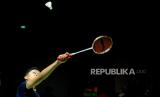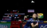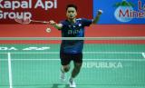 Pebulu tangkis tunggal putra Indonesia Anthony Sinisuka Ginting mengembalikan kok ke arah tunggal putra India Priyanshu Rajawat dalam babak 16 besar Kapal Api Group Indonesia Open 2023 di Istora Senayan, Jakarta, Kamis (15/6/2023). Anthony Sinisuka Ginting berhasil lolos ke perempatfinal Indonesia Open 2023 setelah mengalahkan Priyanshu Rajawat dari India dengan skor 20-21, 21-15 dan 21-15. Pada perempatfinal nanti ginting akan menghadapi rekan senegaranya, Jonatan Christie. (FOTO : Republika/Prayogi)