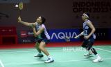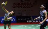 REPUBLIKA.CO.ID, JAKARTA -- Pebulu tangkis ganda putra Indonesia Fajar Alfian dan Muhammad Rian Ardianto mengembalikan kok ke arah ganda putra Cina Ren Xiang Yu dan Tan Qiang dalam babak 16 besar Kapal Api Group Indonesia Open 2023 di Istora Senayan, Jakarta, Kamis (15/6/2023).