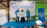 Presdir Asuransi Astra, Christopher Pangestu (kiri) dan Compliance & Risk Management Director Asuransi Astra, Adi Sepiarso (kanan) menyerahkan bantuan kepada Bank Sampah Berkah Sukomanunggal. (FOTO : Dok Republika )