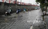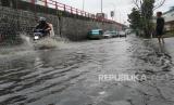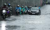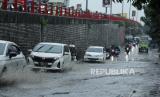 REPUBLIKA.CO.ID, CIMAHI -- Kendaraan melewati genangan cileuncang atau genangan air hujan yang merendam ruas jalan di bawah Flyover Cimindi, Kota Cimahi, Jumat (16/6/2023). Hujan deras dengan durasi cukup lama di Bandung Raya, menyebabkan genangan di sejumlah ruas jalan dengan kontur cekungan.