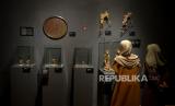 Patung penari Bhedaya Keraton Yogyakarta ditampilkan saat Pameran Abhinaya Karya 2023 di Museum Sonobudoyo, Yogyakarta, Jumat (16/6/2023). Dalam pameran yang bertajuk Kamala Padma: Laga dalam hening, Pijar dalam petang ini menampilkan sosok Ibu dalam berbagai ragam kisah yang terkadang penuh ketidaksempurnaan. Berbagai koleksi karya seni tentang Ibu ditampilkan dari zaman dahulu di Nusantara. (FOTO : Republika/Wihdan Hidayat)
