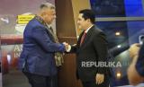 Ketum PSSI Erick Thohir (kanan) menyambut kedatangan Ketua Umum Asosiasi Sepak Bola Argentina (AFA) Claudio Tapia setibanya di Bandara Soekarno Hatta, Tangerang, Banten, Jumat (16/6/2023). Timnas sepak bola Indonesia akan bertanding melawan Argentina dalam laga FIFA Matchday di Stadion Utama Gelora Bung Karno pada Senin (19/6/2023). (FOTO : ANTARA FOTO/Dhemas Reviyanto)