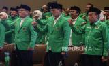 REPUBLIKA.CO.ID, JAKARTA -- Plt Ketua Umum Partai Persatuan Pembangunan (PPP) Muhamad Mardiono menyerahkan surat keputusan pemenangan pemilu kepada anggota PPP Sandiaga Uno saat penutupan Rapat Pimpinan Nasional (Rapimnas) VI PPP di Jakarta, Sabtu (17/6/2023).