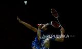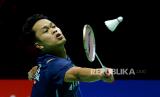 Pebulu tangkis tunggal putra Indonesia Anthony Ginting menang dua set langsung. (FOTO : Republika/Prayogi)