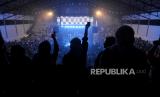 Presiden Joko Widodo bersama Ibu Negara Iriana Joko Widodo turut hadir menyaksikan penampilan band GIGI. (FOTO : Republika/Thoudy Badai)