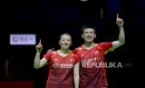 REPUBLIKA.CO.ID,JAKARTA -- Pebulu tangkis ganda campuran Cina Zheng Si Wei dan Huang Ya Qiong melakukan selebrasi usai pertandingan melawan pebulu tangkis ganda campuran Jepang Yuta Watanabe dan Arisa Higashino dalam babak final Kapal Api Group Indonesia Open 2023 di Istora Senayan, Jakarta, Ahad (18/6/2023). Duel duel papan atas di sektor ganda campuran antara pasangan peringkat satu Zheng/Huang (cina) dan peringkat dua Yuta/Arisa (Jepang) ini berhasil dimenangkan pasangan cina dengan skor 21-14 dan 21-11 waktu 35 menit.