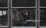 Kerusakan jendela asrama yang pecah di dalam Sekolah Menengah Lhubiriha setelah serangan di sekolah tersebut pada hari Sabtu, di Mpondwe, Uganda, Ahad, (18/6/2023). (FOTO : AP/ Hajarah Nalwadda)