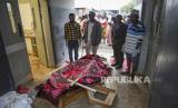 REPUBLIKA.CO.ID, BWERA -- Keluarga menunggu untuk mengumpulkan jenazah penduduk desa yang dibunuh oleh tersangka pemberontak saat serangan hari Sabtu di Sekolah Menengah Lhubiriha, di luar kamar mayat rumah sakit di Bwera, Uganda, Ahad, (18/6/2023).