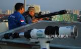 Pengamatan hilal 1 Dzulhijjah 1444 H yang digelar Fakultas Syariah Universitas Islam Bandung (Unisba) bekerja sama dengan Badan Hisab dan Rukyat Daerah (BHRD) Jawa Barat (Jabar), Kementrian Agama Provinsi Jabar, dan BMKG di Observatorium Albiruni Fakultas Syariah Unisba, Jalan Tamansari, Kota Bandung, Ahad (18/6/2023). Dari hasil pengamatan di lokasi tersebut yang memiliki diatas ketinggian 750 Meter dari permukaan laut (Mdpl), hilal tidak terlihat karena nilai ketinggiannya belum memenuhi batas minimal hilal. Selanjutnya hasil pengamatan akan dilaporkan kepada Kementrian Agama RI sebagai bahan sidang Isbat 1 Dzulhijjah 1444 H. Untuk keputusan akhirnya, menunggu pengumuman resmi dari Pemerintah melalui Kementrian Agama. (FOTO : Edi Yusuf/Republika)