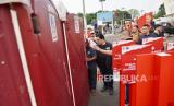 Ketua PSSI Erick Thohir (tengah) sedang mengecek kesiapan toilet umum pada penyelenggaran FIFA Matchday saat mengunjungi Stadion GBK, Jakarta, Ahad (18/6/2023). (FOTO : Dok. Republika)