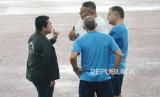 REPUBLIKA.CO.ID, JAKARTA -- Ketua PSSI Erick Thohir (kiri) Presiden Asosiasi Sepak Bola Argentina (AFA) Claudio Tapia (kedua kanan) berbincang di sela latihan timnas Argentina di Stadion Utama GBK, Jakarta, Ahad (18/6/2023).
