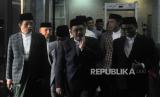 Wakil Menteri Agama Zainut Tauhid Saadi (tengah) bersama Imam Besar Masjid Istiqlal Nasaruddin Umar (kiri) tiba untuk memimpin sidang isbat di Jakarta, Ahad (18/6/2023). Pemerintah menetapkan Hari Raya Iduladha 1444 Hijriyah jatuh pada Kamis (29/6/2023), berdasarkan pemantauan atau rukyatul hilal yang dilaksanakan pada 99 titik di Indonesia. (FOTO : Republika/Putra M. Akbar)