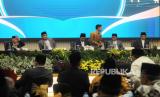 Wakil Menteri Agama Zainut Tauhid Saadi (tengah) bersama Ketua MUI KH Abdullah Jaidi, Ketua Komisi VIII DPR Ashabul Khafi, Dirjen Bimas Islam Kementerian Agama Kamaruddin Amin dan Imam Besar Masjid Istiqlal Nasaruddin Umar (dari kiri ke kanan) menyampaikan konferensi pers mengenai hasil sidang isbat di Jakarta, Ahad (18/6/2023). Pemerintah menetapkan Hari Raya Iduladha 1444 Hijriyah jatuh pada Kamis (29/6/2023), berdasarkan pemantauan atau rukyatul hilal yang dilaksanakan pada 99 titik di Indonesia. (FOTO : Republika/Putra M. Akbar)