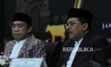 REPUBLIKA.CO.ID, JAKARTA -- Wakil Menteri Agama Zainut Tauhid Saadi bersama Ketua MUI KH Abdullah Jaidi, Ketua Komisi VIII DPR Ashabul Khafi, Dirjen Bimas Islam Kementerian Agama Kamaruddin Amin, dan Imam Besar Masjid Istiqlal Nasaruddin Umar menyampaikan konferensi pers mengenai hasil sidang isbat di Jakarta, Ahad (18/6/2023).
