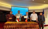 Konsulat Jenderal RI di Hong Kong Ricky Suhendar, CEO PT Rusky Aero Indonesia Bambang Sudjatmiko, Direktur Forever Harvest Corporation Ltd Alex Chu dan Founder yang juga Komisiaris PT Rusky Aero Indonesia Benny Rustanto (dari kiri) , di sela penandatanganan kerja sama PT Rusky Aero Indonesia (Raindo United Services) dengan Forever Harvest Corporation Ltd Hong Kong beberapa waktu lalu. Kerja sama tersebut menjadikan Raindo United Services untuk dapat berkontribusi langsung dalam meningkatkan kemitraan ekonomi serta pengembangan platform ekspor dan impor antara Indonesia dengan Hong Kong. (FOTO : Dok. Republika)