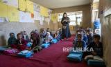 Siswa kelas dua duduk bersama di kelas mereka di sebuah sekolah pedesaan di Bamiyan, Afghanistan, Senin (19/6/2023). (FOTO : AP Photo/Ebrahim Noroozi)