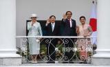 Presiden Joko Widodo (kedua kanan) didampingi Ibu Negara Iriana Joko Widodo (kanan) dan Kaisar Jepang Naruhito (kedua kiri) didampingi Permaisuri Masako melambaikan tangan ke arah wartawan di veranda Istana Kepresidenan Bogor, Jawa Barat, Senin (19/6/2023). Presiden Jokowi menerima kunjungan kenegaraan Kaisar Jepang Naruhito dan Permaisuri Masako yang merupakan lawatan pertama ke Indonesia sejak naik takhta tahun 2019 lalu. (FOTO :  ANTARA FOTO/Sigid Kurniawan)