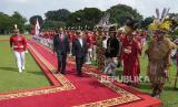 REPUBLIKA.CO.ID, BOGOR -- Presiden Joko Widodo (tengah) dan Kaisar Jepang Naruhito (kanan) memeriksa pasukan kehormatan saat kunjungan kenegaraan di Istana Kepresidenan Bogor, Jawa Barat, Senin (19/6/2023).