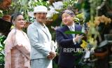 Kaisar Jepang Naruhito (kanan) berbicara dengan istrinya Permaisuri Masako (tengah) dan Ibu Negara Indonesia Iriana Joko Widodo (kiri) selama kunjungan mereka ke Kebun Raya Bogor dekat Istana Kepresidenan di Bogor, Indonesia, (19/6/2023). (FOTO : EPA-EFE/WILLY KURNIAWAN / POOL)
